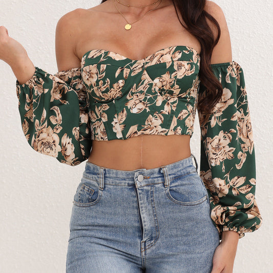Shapewear herringbone corset, sexy off-the-shoulder short crop top