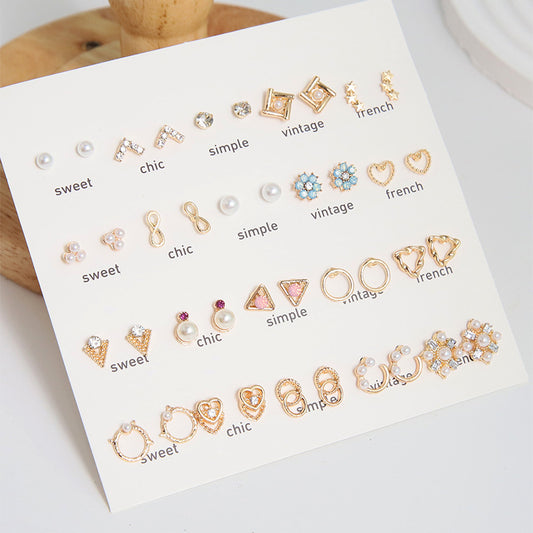 Pearl and Diamond Stud Earrings Set - 20 Pairs