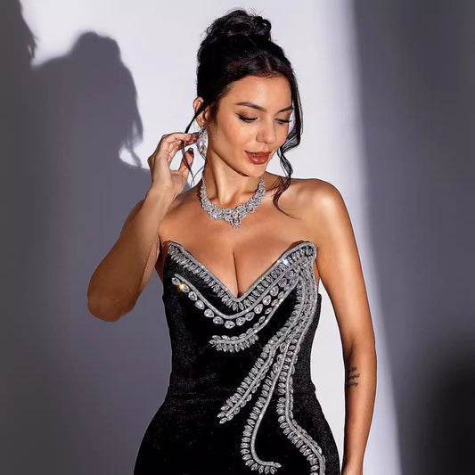 High Slit Black Bandeau Dinner Dress