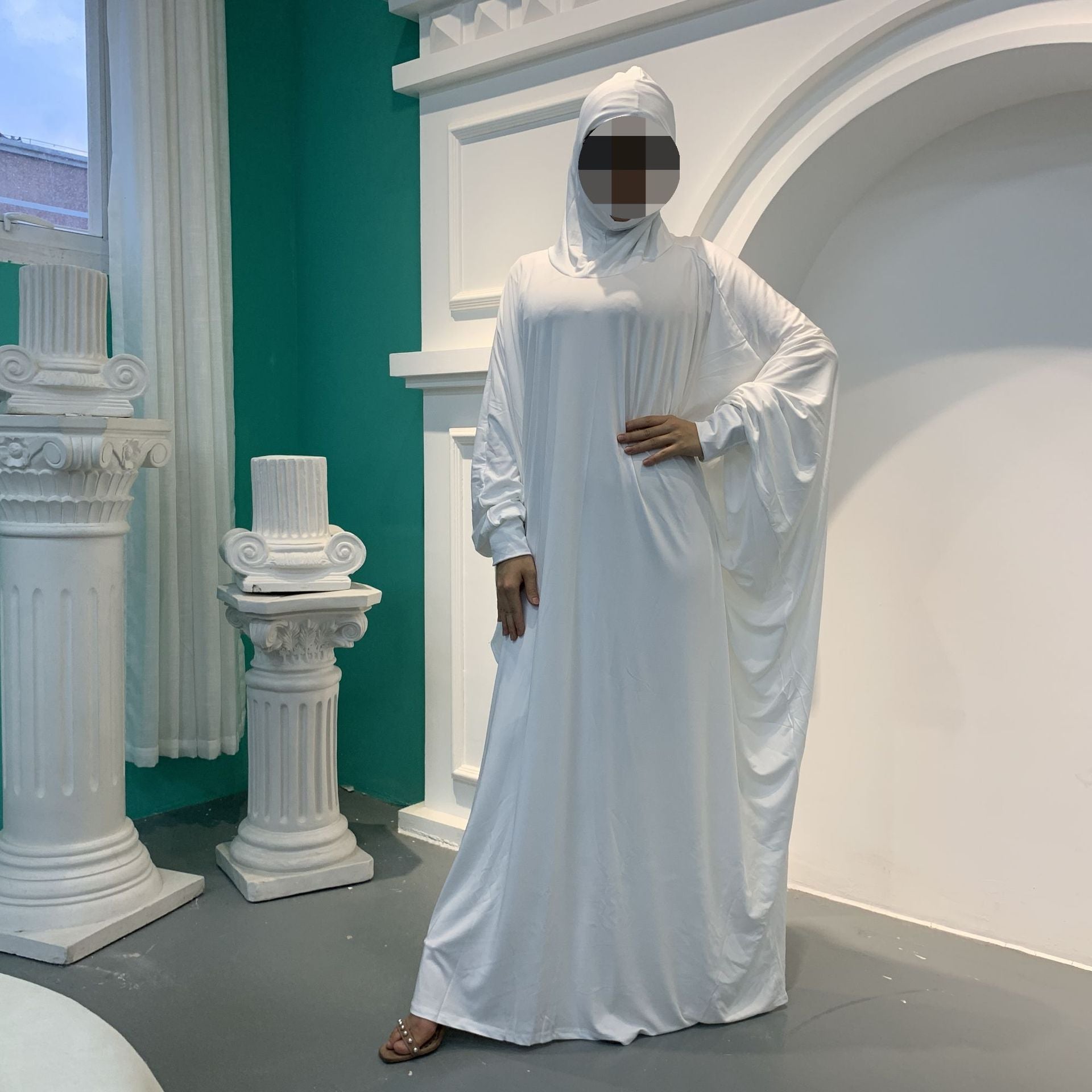 This fashionable Middle Eastern-inspired dress features a solid color design with a flowing big swing silhouette and stylish dolman sleeves. A perfect blend of elegance and comfort for any occasion.