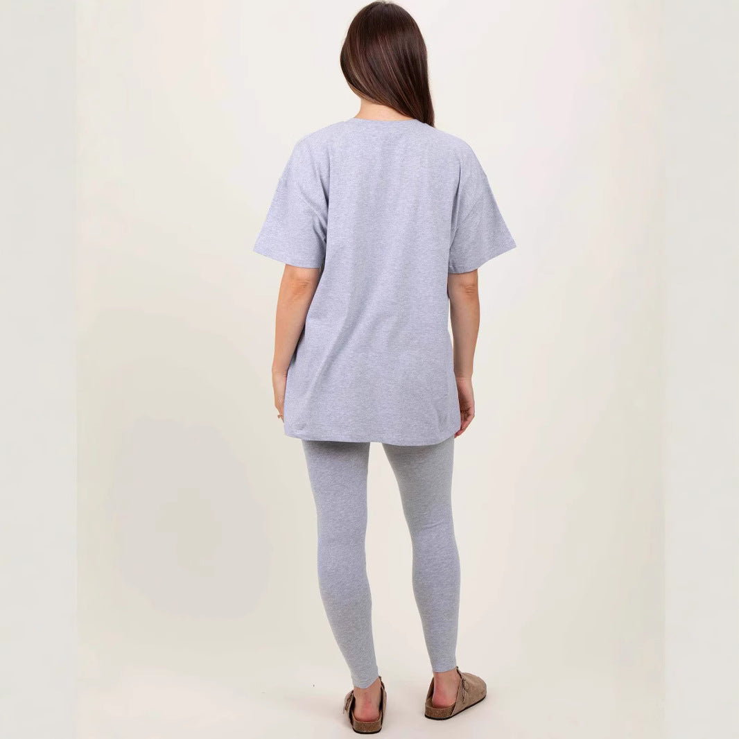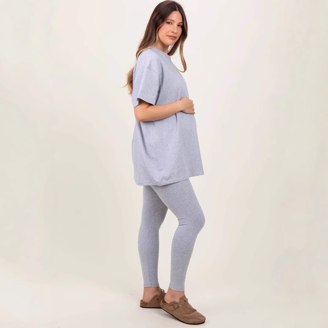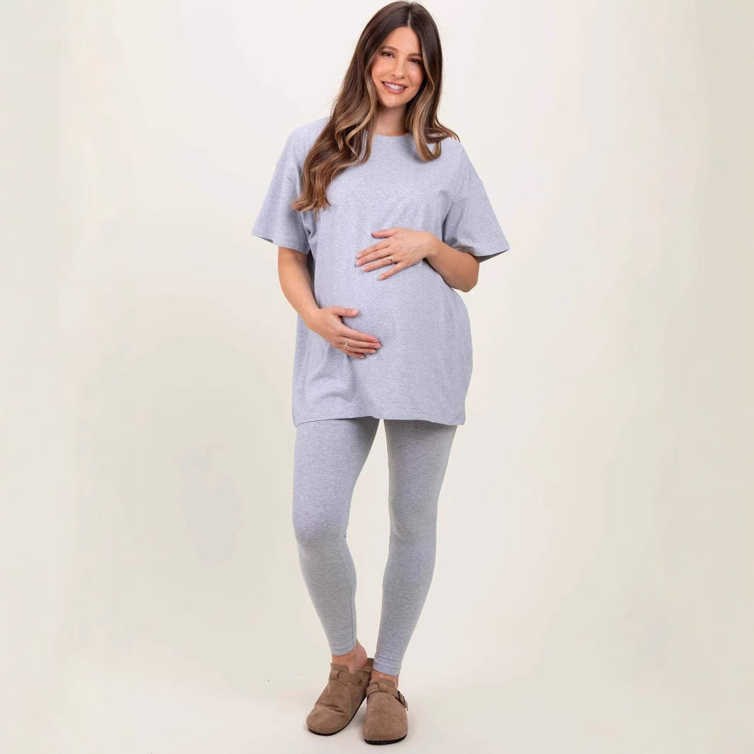 Simplify your pregnancy wardrobe with this breathable 2-piece maternity set, designed for all-day comfort. The round neck top features a relaxed fit with short sleeves, while the elastic-waist pants provide full bump coverage. Made from soft, stretchy fabric that grows with you. Machine washable.