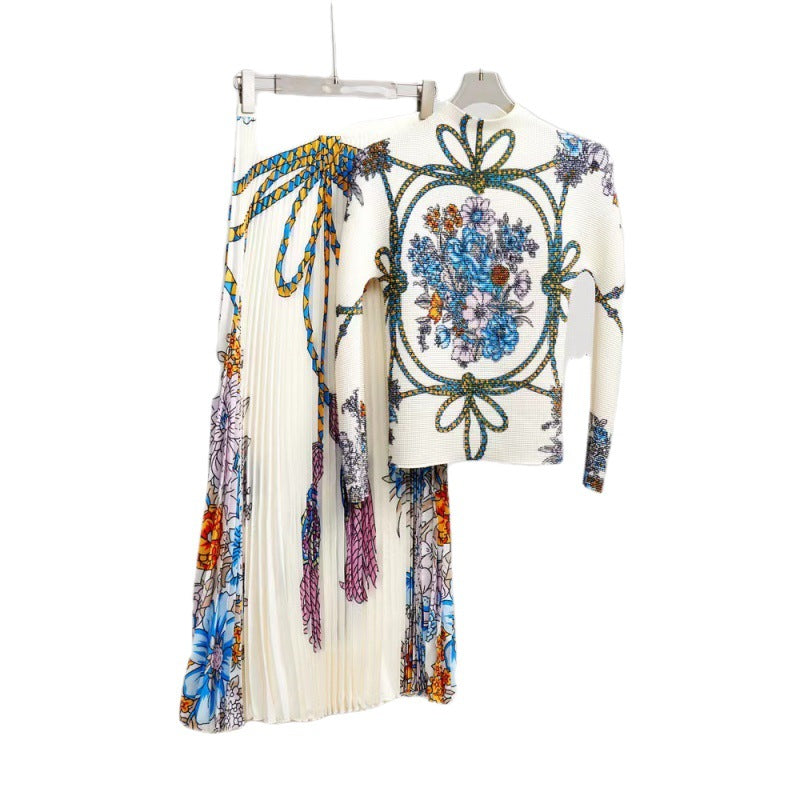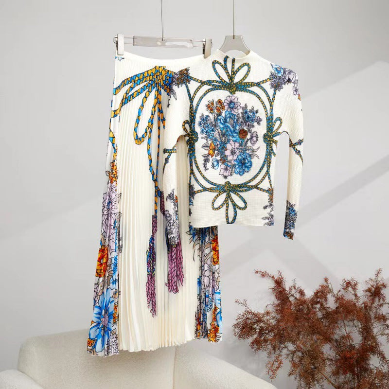 Autumn Women's Fashion Pleated Top & Skirt Set