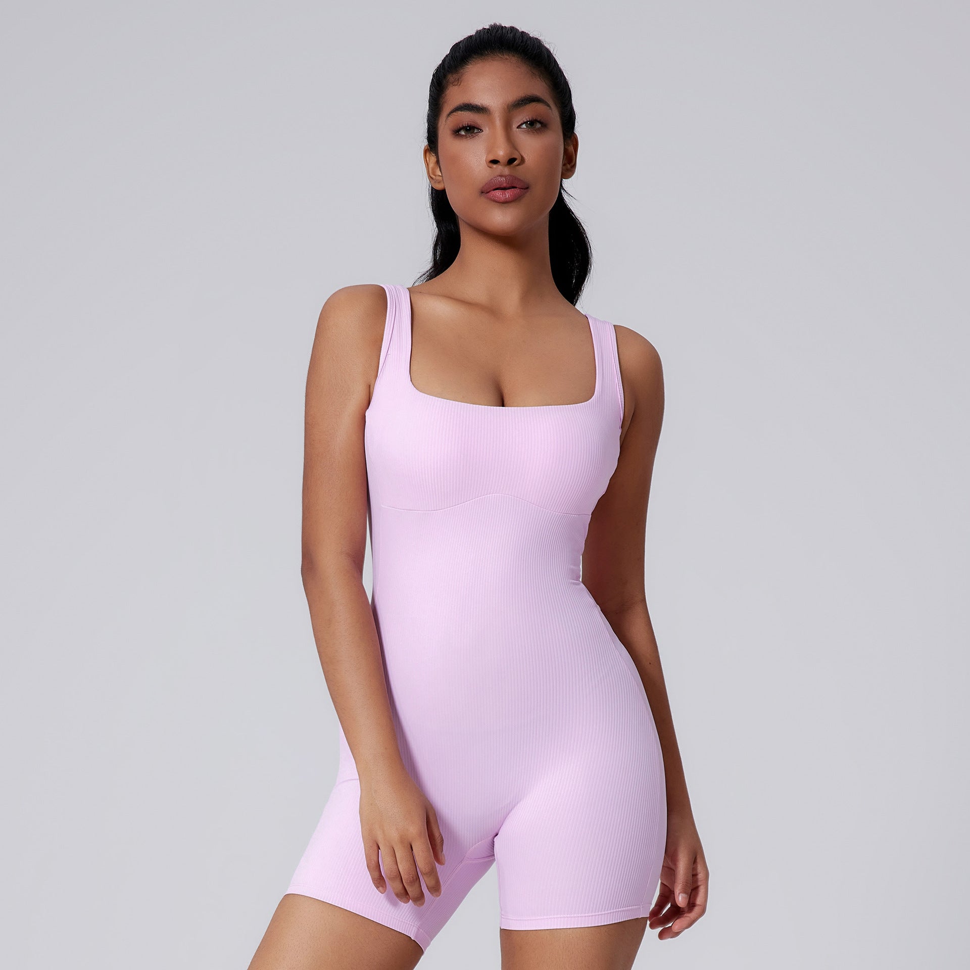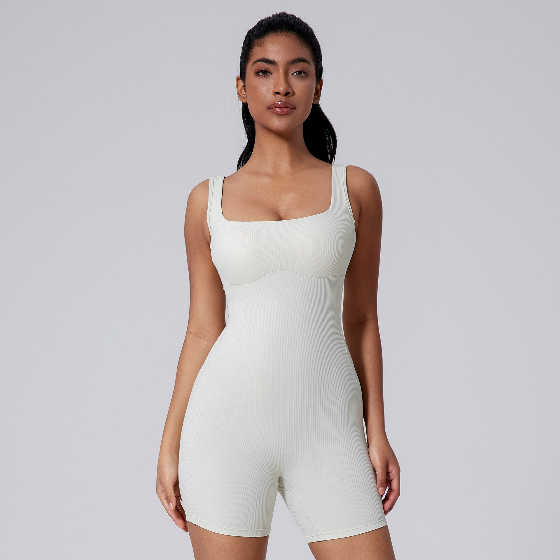 Elevate your workouts with this sleek yoga bodysuit, designed to blend performance and style effortlessly. Made from breathable, quick-dry fabric, it keeps you cool during intense sessions while the sculpting ribbed shorts offer gentle tummy control for a flattering fit. The beautiful back design adds a stylish touch, staying perfectly in place during inversions or dynamic movements. Whether you're flowing through yoga poses, powering through Pilates, or heading to a dance class, this bodysuit moves with you seamless construction ensures comfort without chafing. Versatile enough to wear from studio to street, it’s your go-to for workouts or casual athleisure. Pair it with leggings for cooler days or wear it solo for a chic, streamlined look.