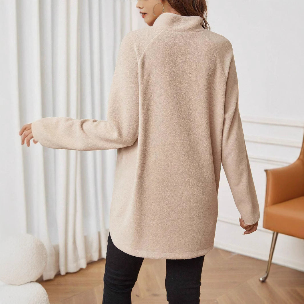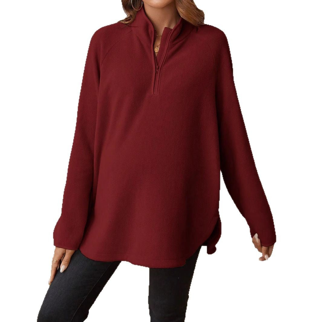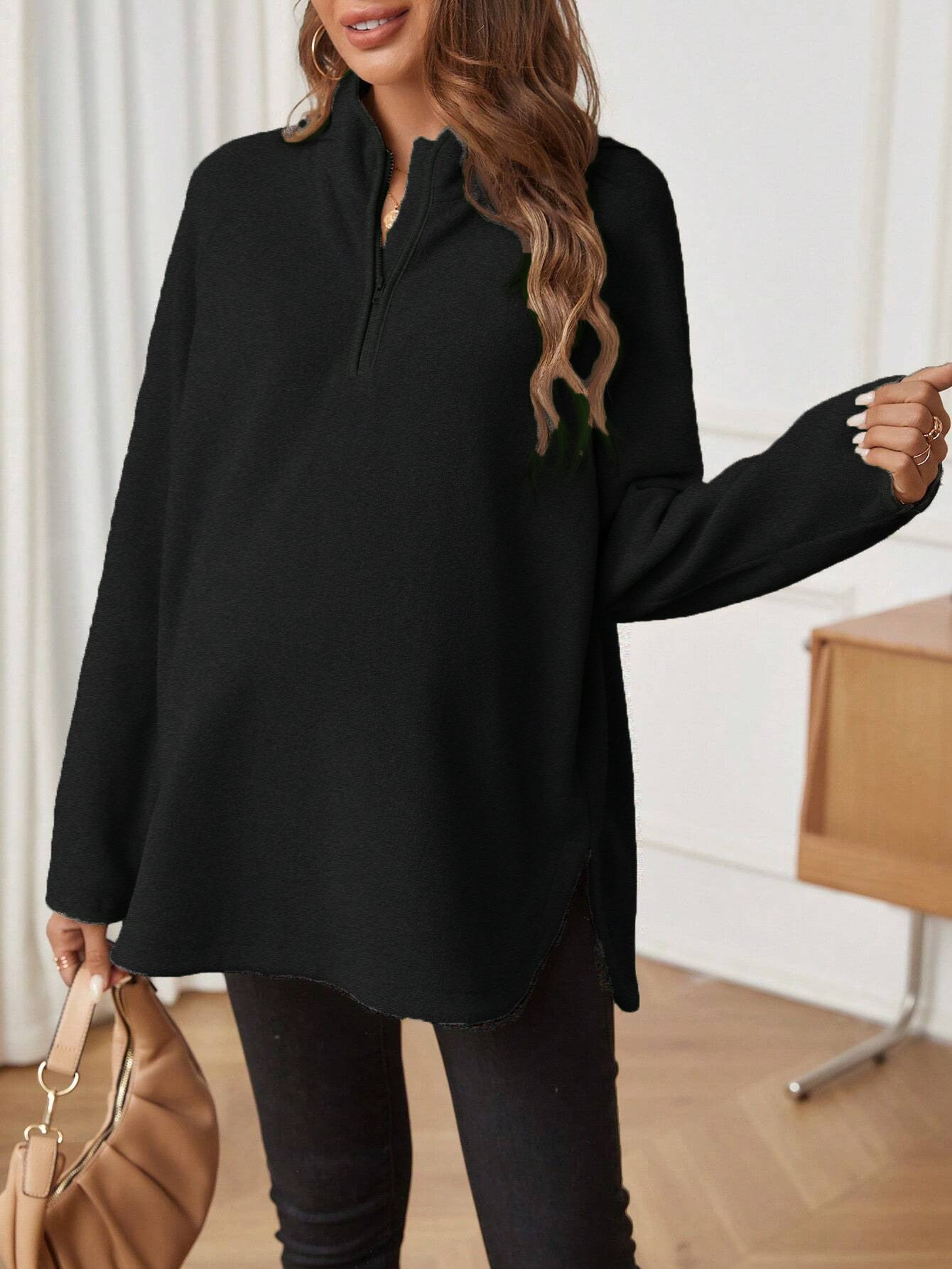 Stay snug and stylish this season with this versatile zip-front maternity tee, designed for effortless comfort during cooler months. The soft, breathable fabric gently stretches with your growing bump, while the partial zipper detail adds a modern touch and allows for adjustable ventilation. Featuring a relaxed fit and long sleeves, this top is perfect for layering under cardigans or wearing solo with maternity jeans or leggings. The solid color palette ensures easy pairing, making it a go-to piece for casual outings, lazy weekends, or cozy nights in. Designed to transition seamlessly through your pregnancy journey, this top combines practicality with understated elegance because comfort should never compromise style.