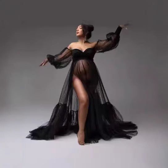 Float through pregnancy in cloud-soft comfort with this dreamy polka dot maternity pajama set. Designed for expecting moms, the breathable mesh fabric and puff sleeves add a touch of romance to your nighttime routine, while the adjustable V-neck tube top and flowing skirt gently accommodate your growing bump. The lightweight tulle overlay creates graceful movement, perfect for lazy mornings or maternity photoshoots. With its split hem design and relaxed fit, this set grows with you from bump to postpartum because every mom deserves to feel beautiful, even in loungewear.