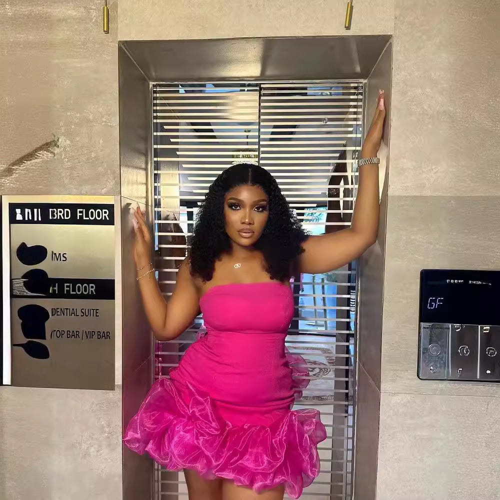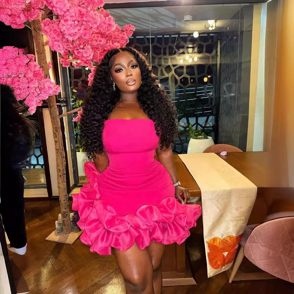 Embrace chic elegance with this European and American style solid color bandeau dress. Featuring stylish ruffle details and a slim waist design, this sleeveless piece is perfect for showcasing a graceful, feminine silhouette. Ideal for parties, dinners, or special occasions.