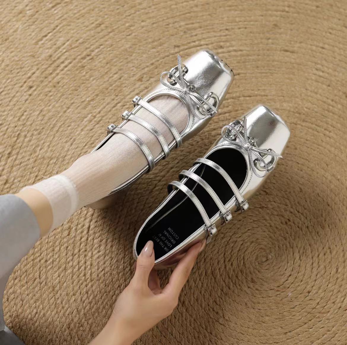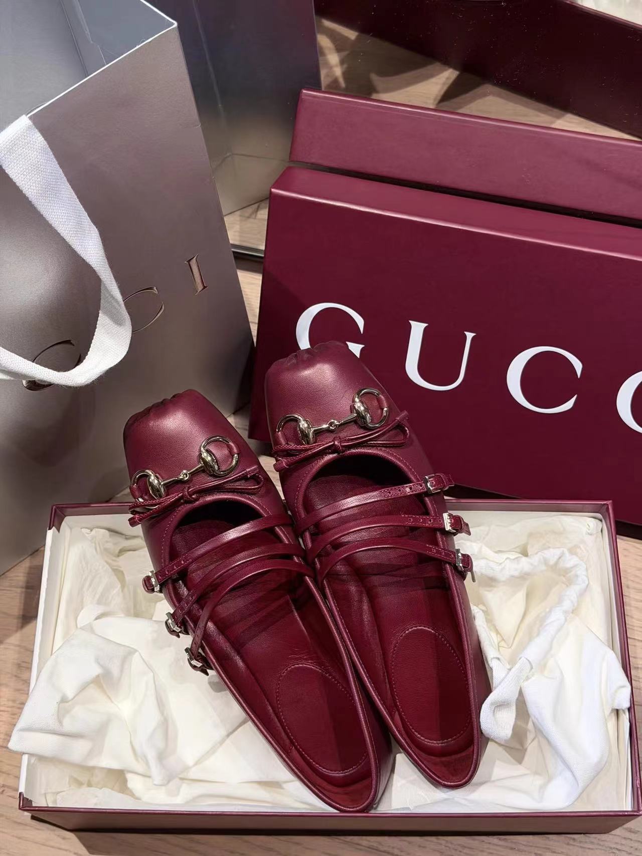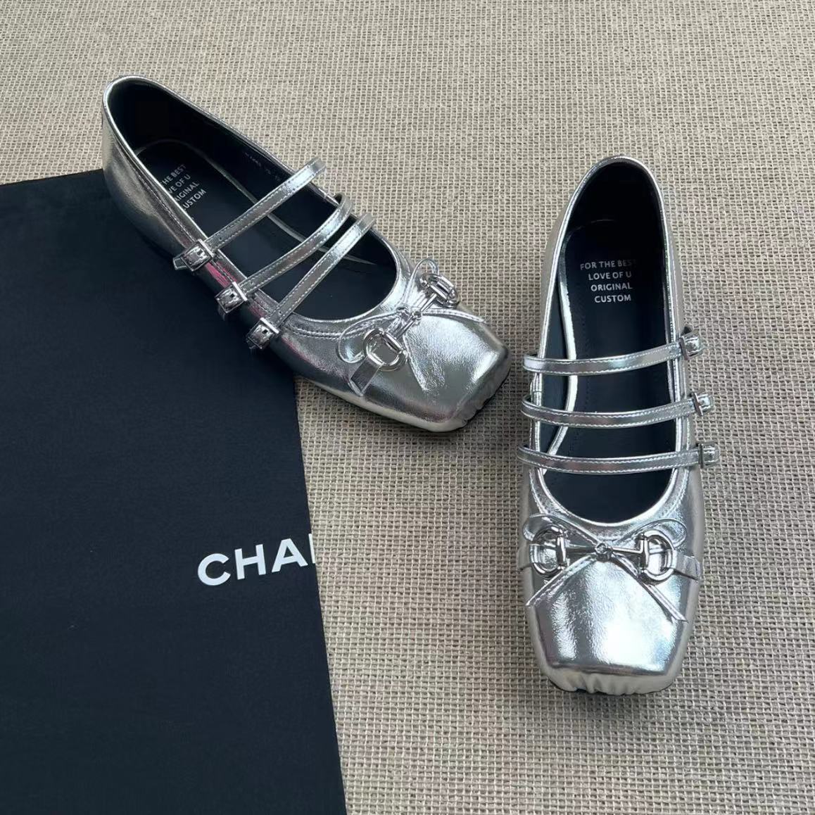 Crafted from supple sheepskin, these high-end ballet flats feature a classic horsebit detail, square toe, and shallow Mary Jane silhouette. Inspired by retro little red shoes, they offer timeless elegance with a comfortable flat sole for everyday wear.